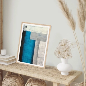 Plagát v ráme zo svetlého duba - Poetická kompozícia šedej a modrej - 30x30 cm