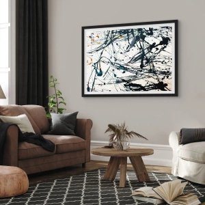 Plagát v čiernom ráme - Expresívna abstrakcia v štýle gestickej maľby - 50x70cm - Expresionistická abstrakcia - Moderná nástenná dekorácia do obývacej izby a spálne ARTTOR