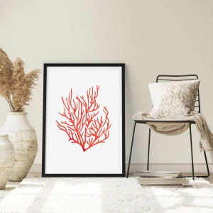 Plagát v čiernom ráme - Červený koral na bielom pozadí v minimalistickom štýle - 50x70cm - Koralový filigrán - Moderná nástenná dekorácia do obývacej izby a spálne ARTTOR