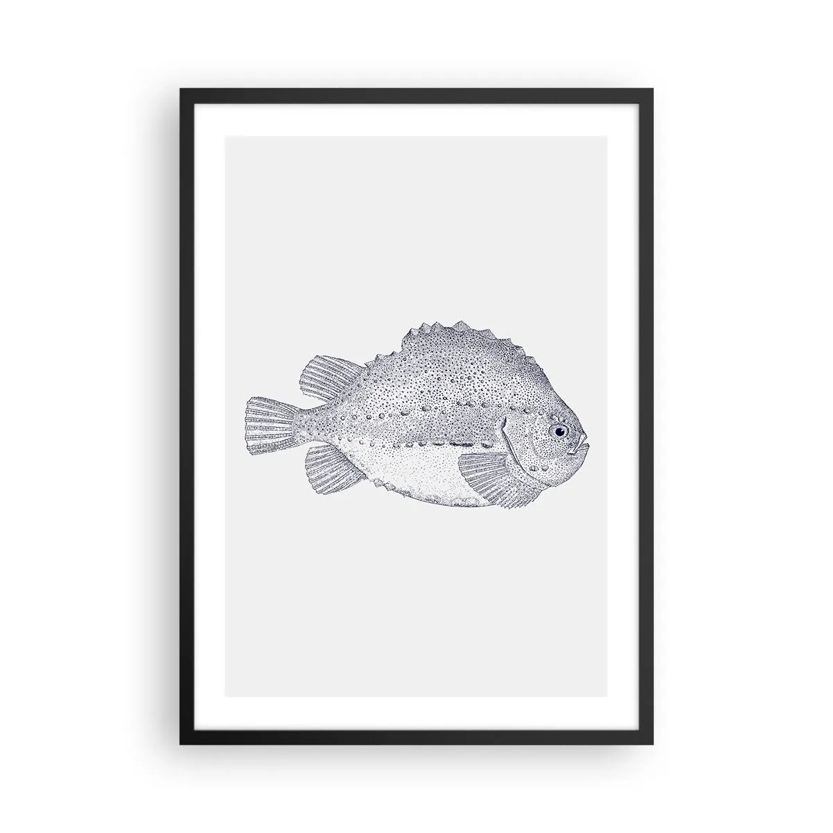Plagát v čiernom ráme - Ilustrácia vintage rýb na svetlom pozadí - 50x70cm - Do albumu prírodovedca - Moderná nástenná dekorácia do obývacej izby a spálne ARTTOR
