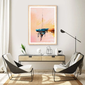 Plagát v ráme zo svetlého duba - Večer v prístave - 30x40 cm