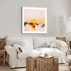 Plagát v bielom ráme - Večer v prístave - 30x40 cm