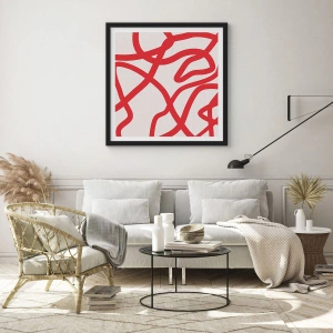 Plagát v čiernom ráme - Červené na bielom - 60x60 cm