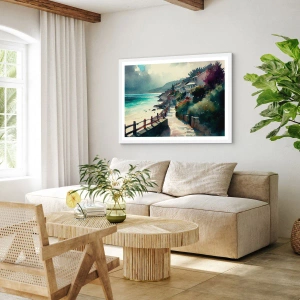 Plagát v bielom ráme - Stredomorské mestečko - 61x91 cm