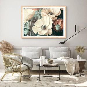 Plagát v ráme zo svetlého duba - Šepot makov - 100x70 cm