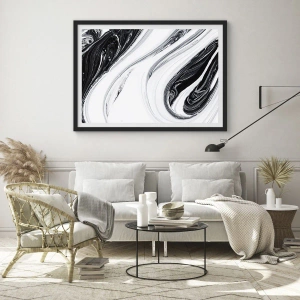 Plagát v čiernom ráme - Abstraktný vzor v čiernej a bielej farbe s plynulými líniami - 50x70cm - Spojenie protikladov - Moderná nástenná dekorácia do obývacej izby a spálne ARTTOR
