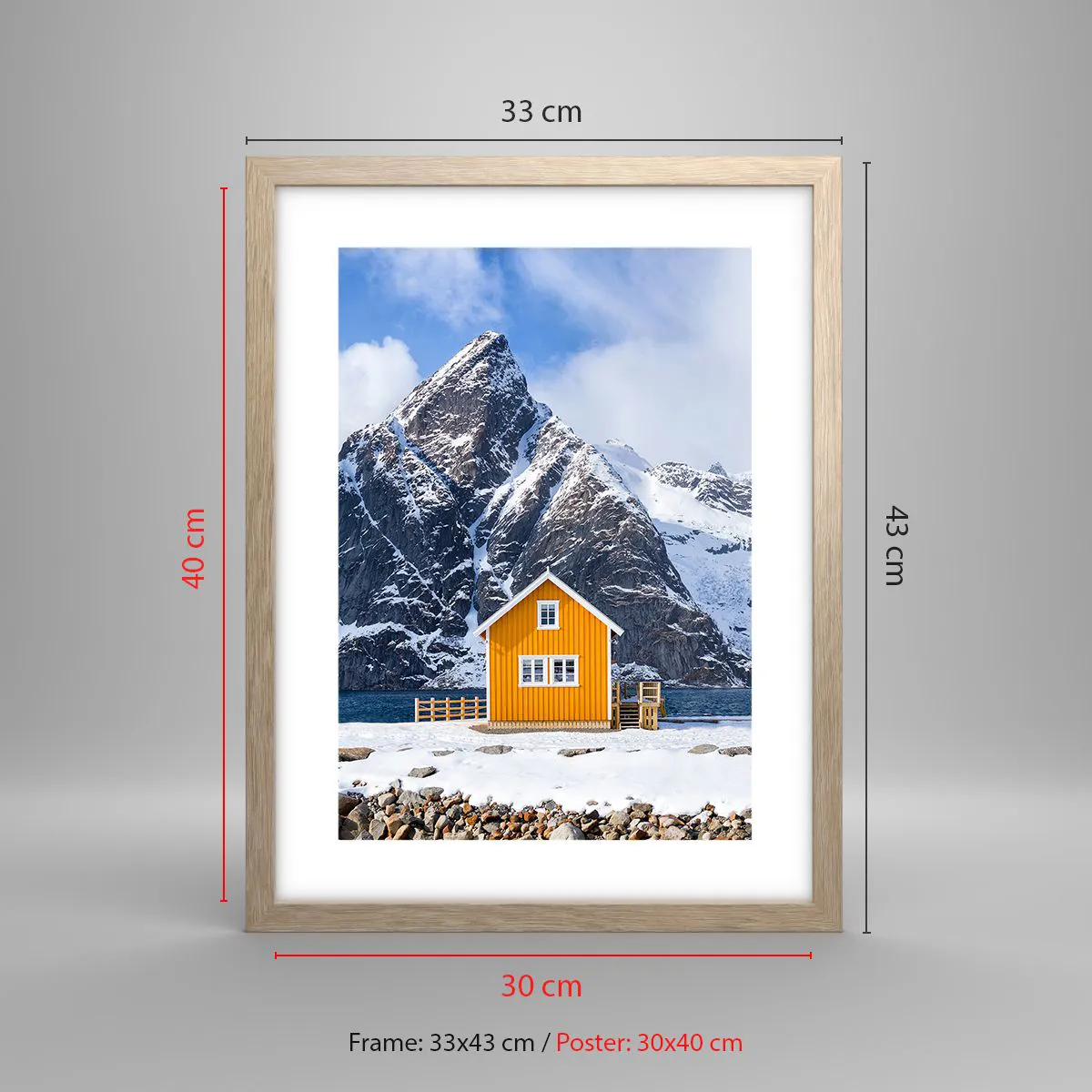 Plagát v ráme zo svetlého duba - Škandinávska dovolenka - 30x40 cm