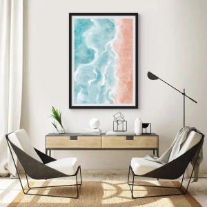 Plagát v čiernom ráme - Oceánske vlny sa stretávajú s piesočnatou plážou - 50x70cm - Abstrakcia mrakov - Moderná nástenná dekorácia do obývacej izby a spálne ARTTOR