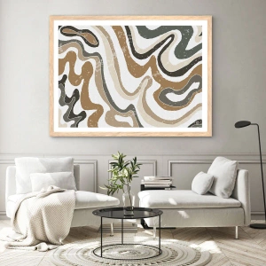 Plagát v ráme zo svetlého duba - Meandre zemitých farieb - 40x50 cm