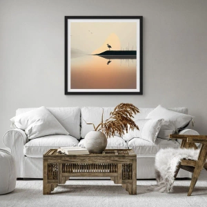 Bocian na brehu jazera s odrazom vo vode je motív, ktorý vytvára pokojnú atmosféru v každom interiéri. Zarámovaný plagát od spoločnosti ARTTOR je perfektnou dekoráciou pre moderné priestory, ako je obývačka alebo spálňa.