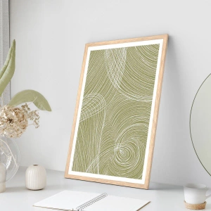 Plagát v ráme zo svetlého duba - Majstrovská abstrakcia v bielej - 70x50 cm