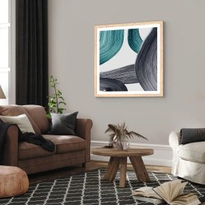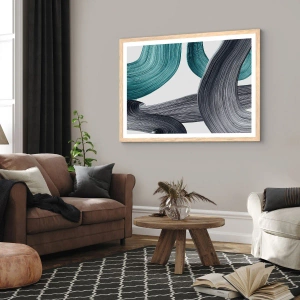 Plagát v ráme zo svetlého duba - Smaragdové a čierne vlny - 61x91 cm