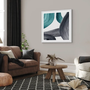 Plagát v bielom ráme - Smaragdové a čierne vlny - 50x50 cm