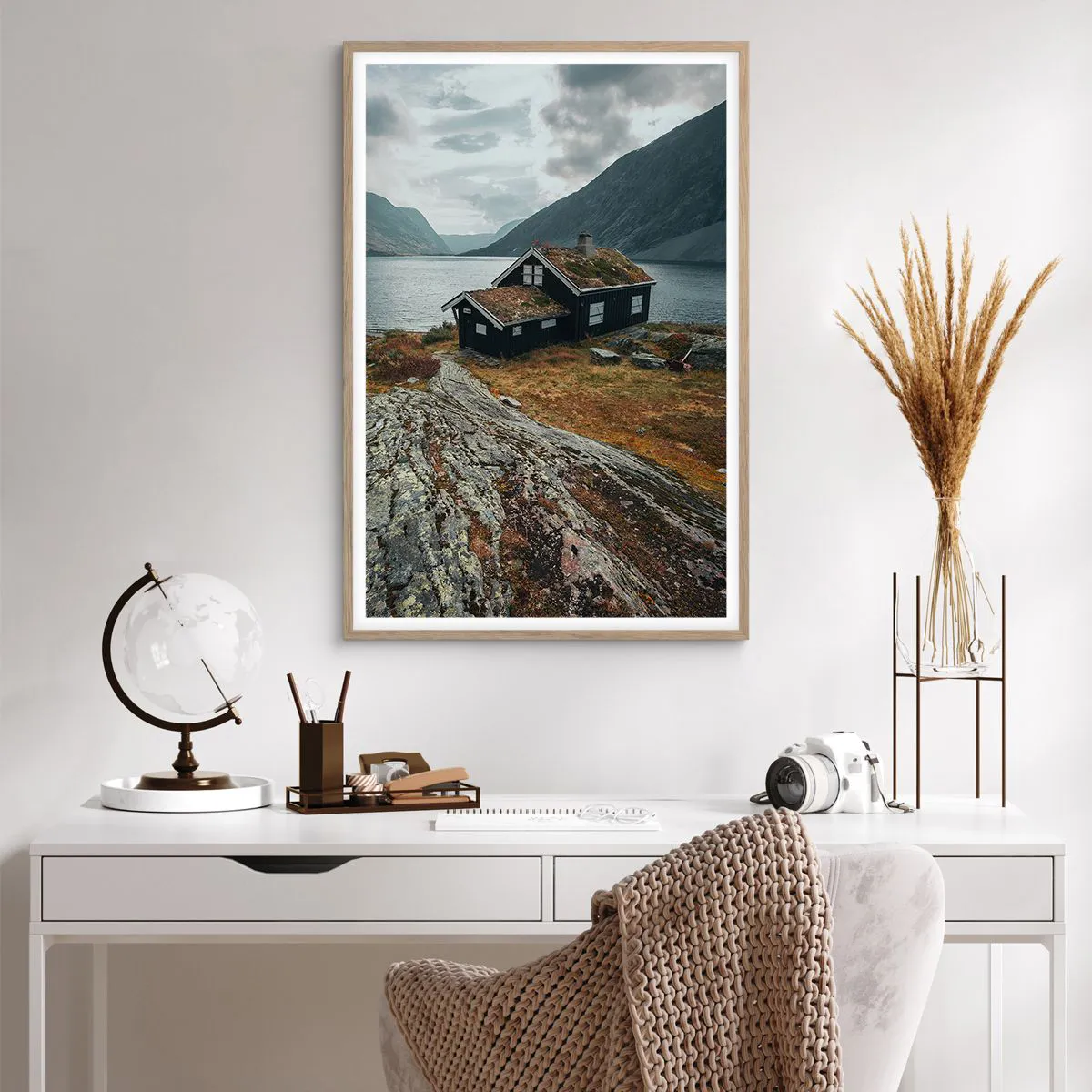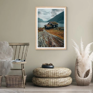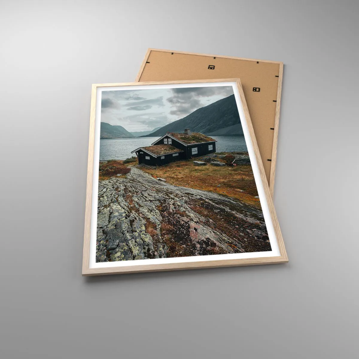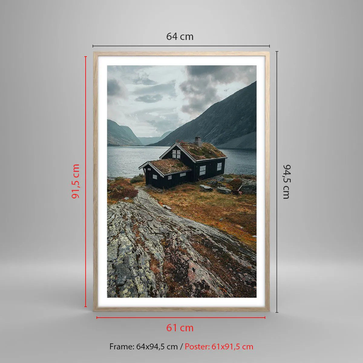Plagát v ráme zo svetlého duba - Domček pri fjorde - 61x91 cm