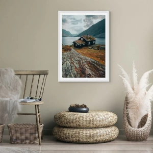 Plagát v bielom ráme - Domček pri fjorde - 70x100 cm