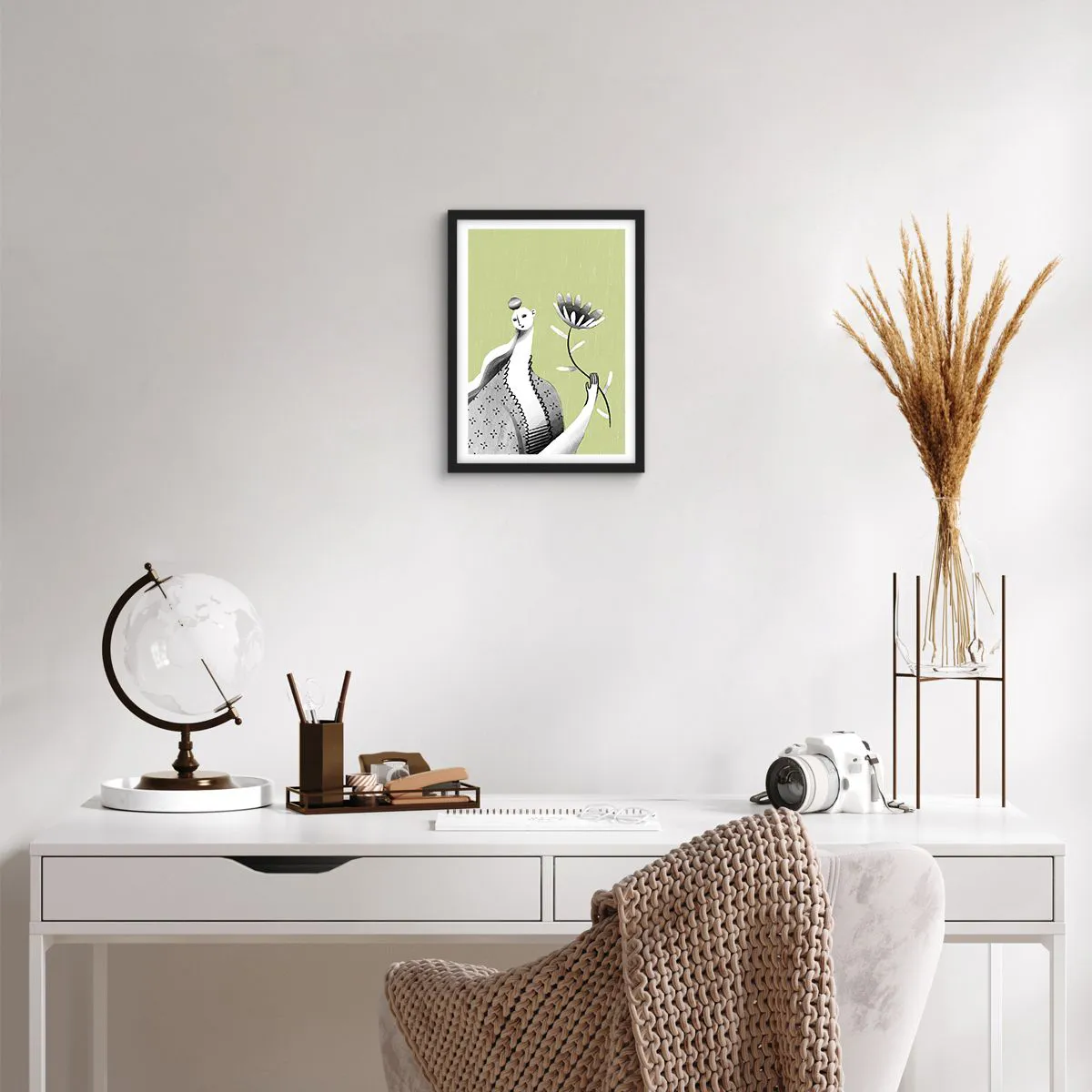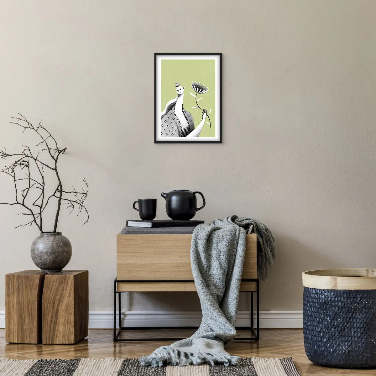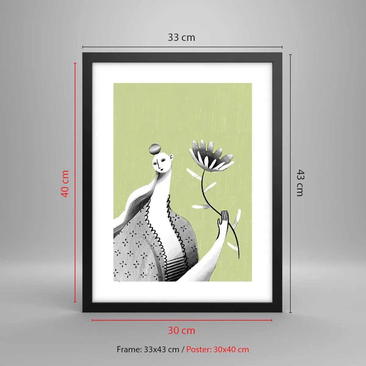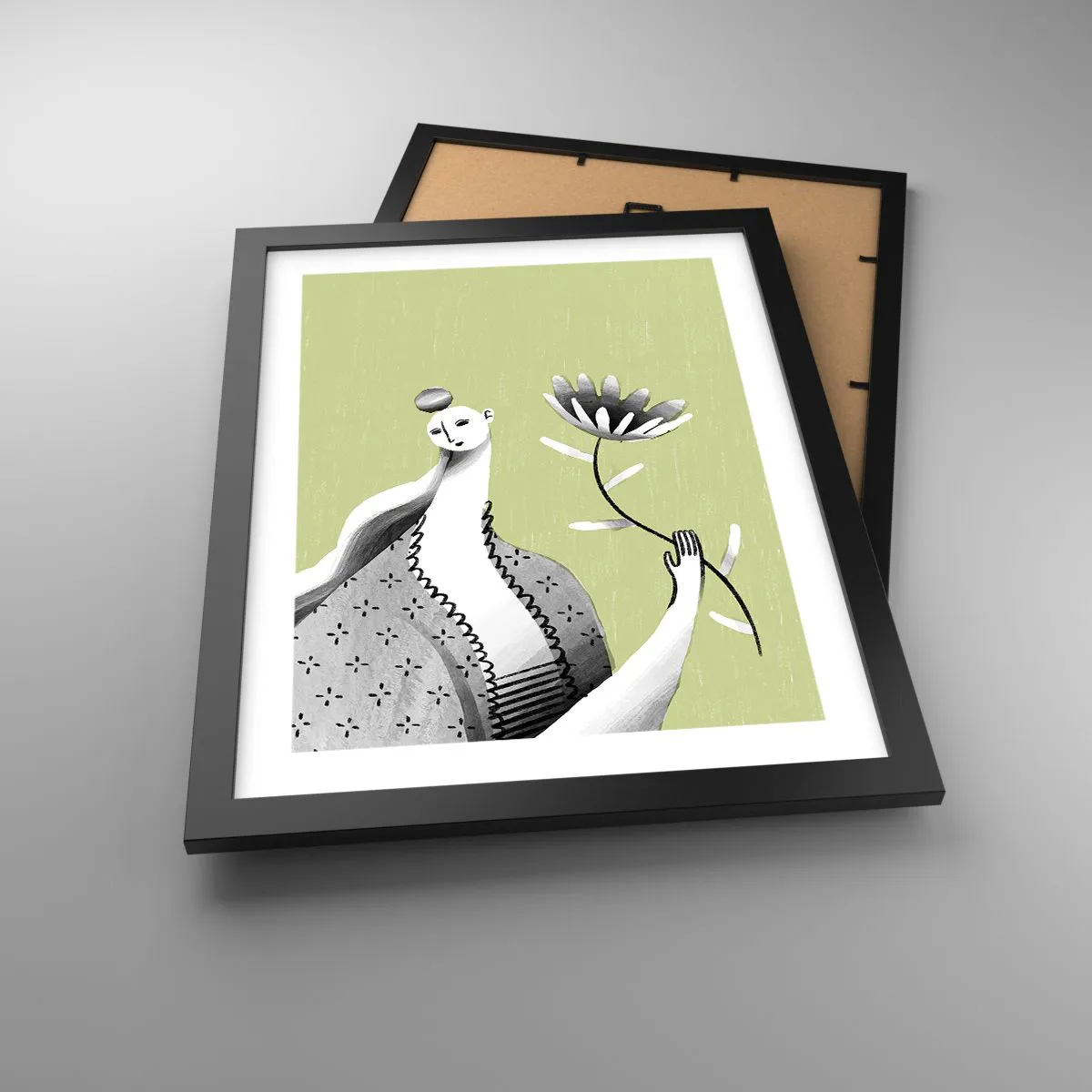Plagát v čiernom ráme - Modernistický portrét – držiaci kvet - 30x40 cm