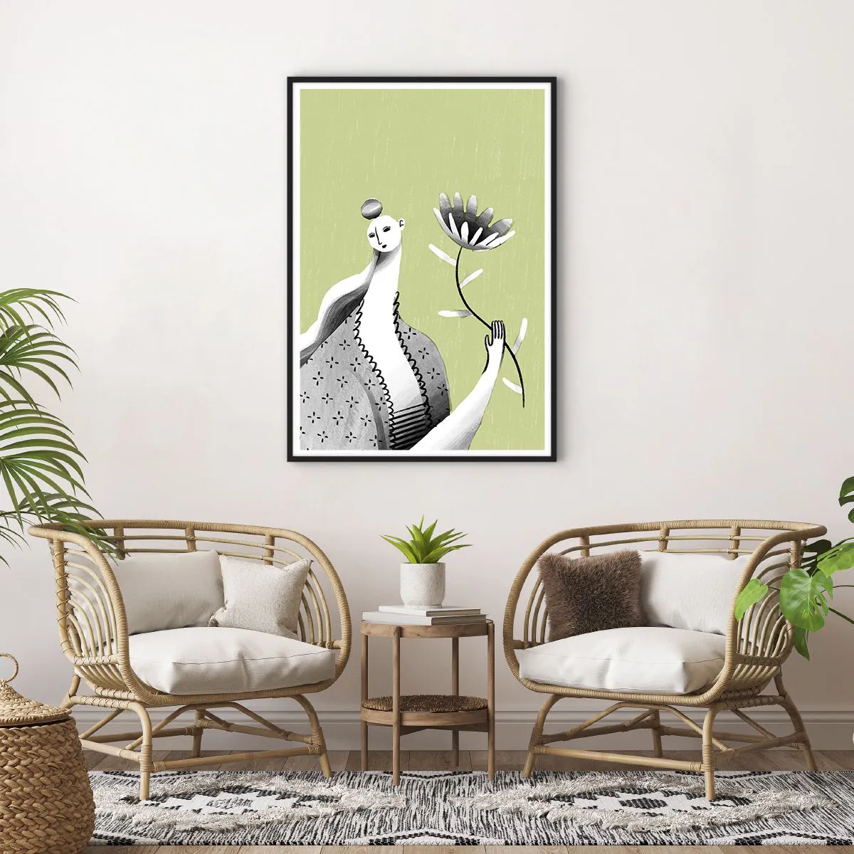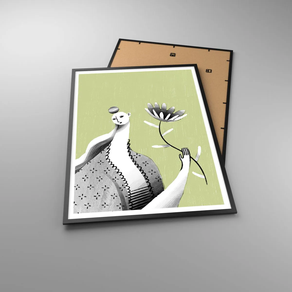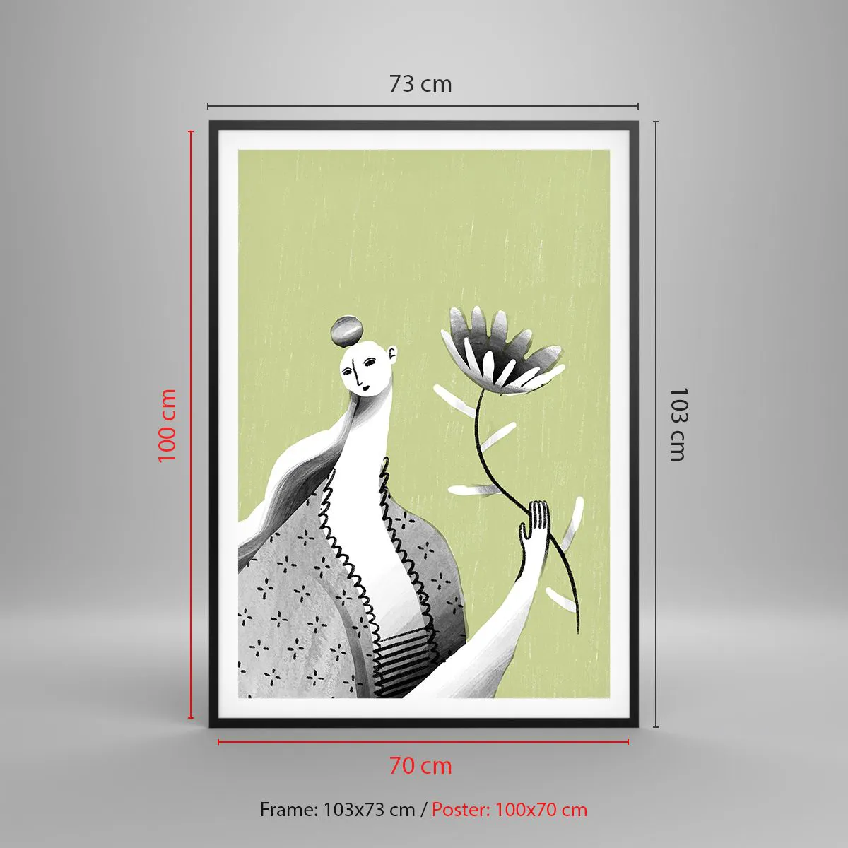Plagát v čiernom ráme - Modernistický portrét – držiaci kvet - 70x100 cm