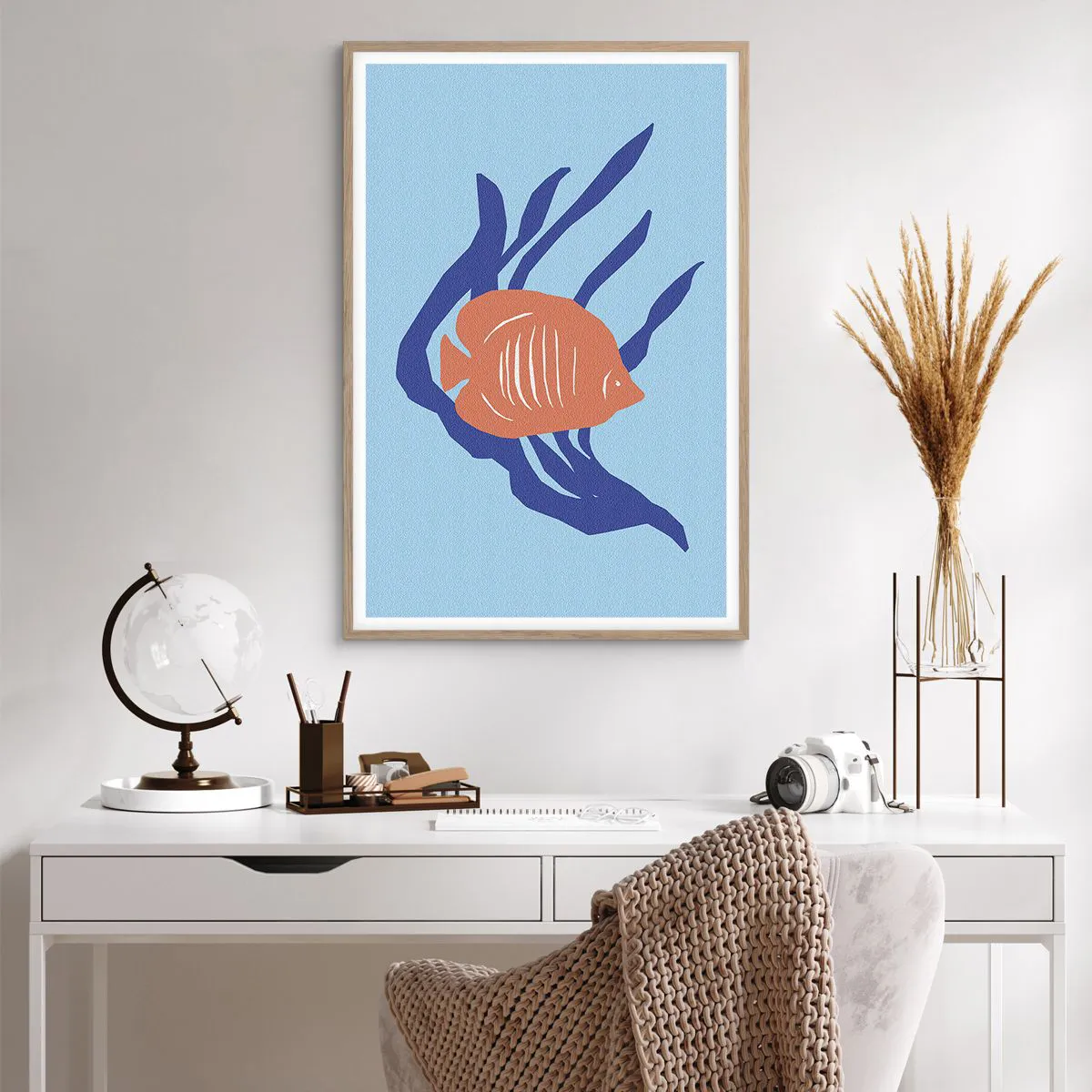 Plagát v ráme zo svetlého duba - Obyvateľka koralových vôd - 61x91 cm