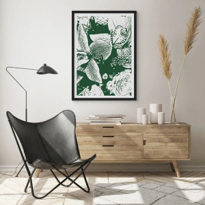 Plagát v čiernom ráme - Botanická ilustrácia kvetov a listov v kontrastných farbách - 50x70cm - Kytica – svet zelene - Moderná nástenná dekorácia do obývacej izby a spálne ARTTOR