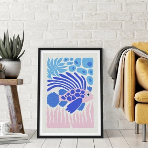 Plagát v čiernom ráme - Štylizované exotické ryby v podvodnom prostredí - 50x70cm - Vo svojom živle - Moderná nástenná dekorácia do obývacej izby a spálne ARTTOR