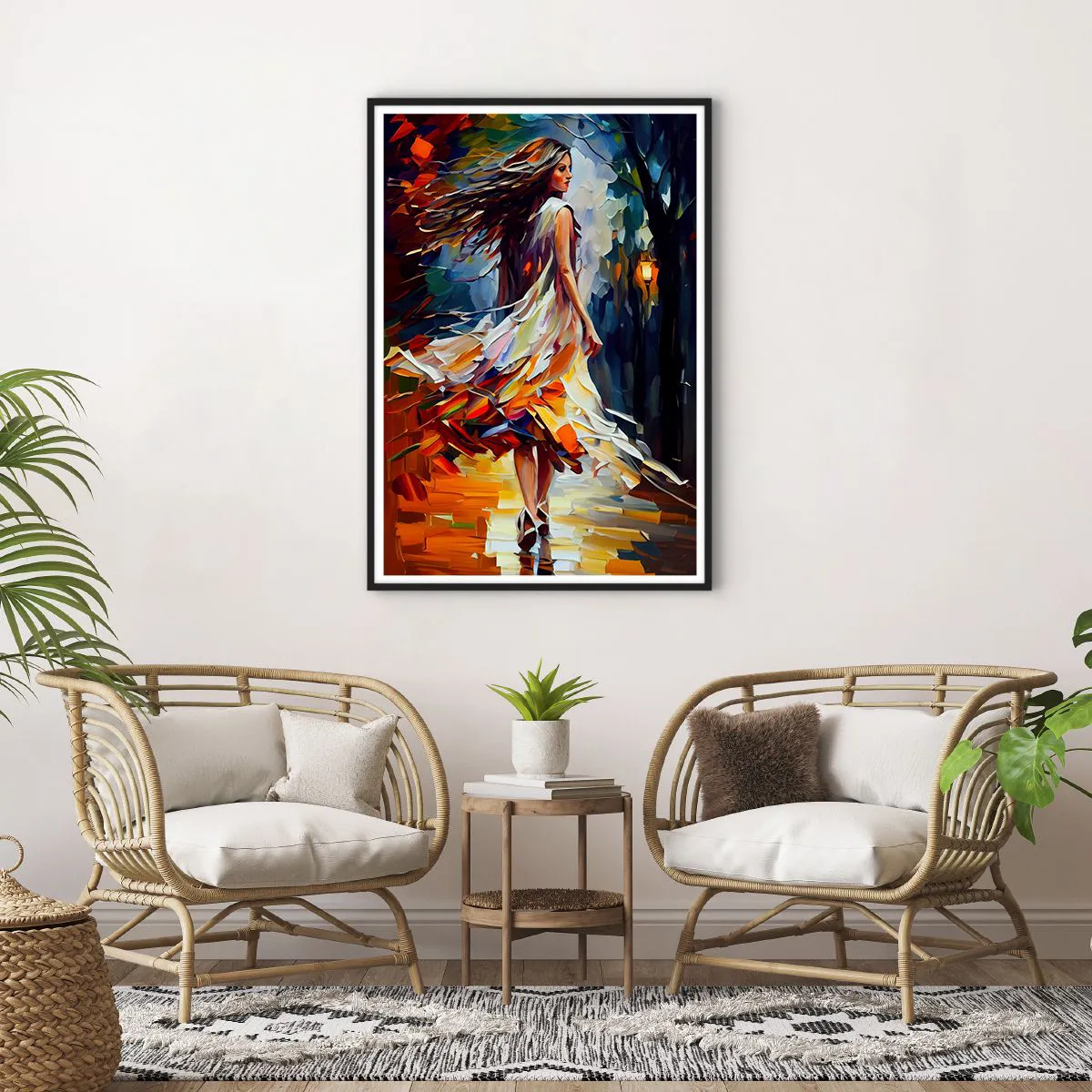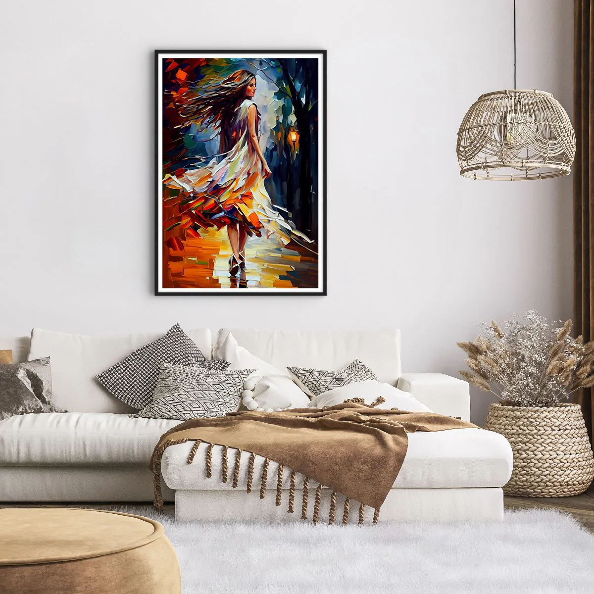 Plagát v čiernom ráme - Jesenné dievča - 70x100 cm