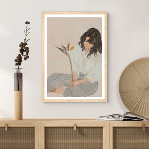 Plagát v ráme zo svetlého duba - Portrét s exotickým kvetom - 30x40 cm