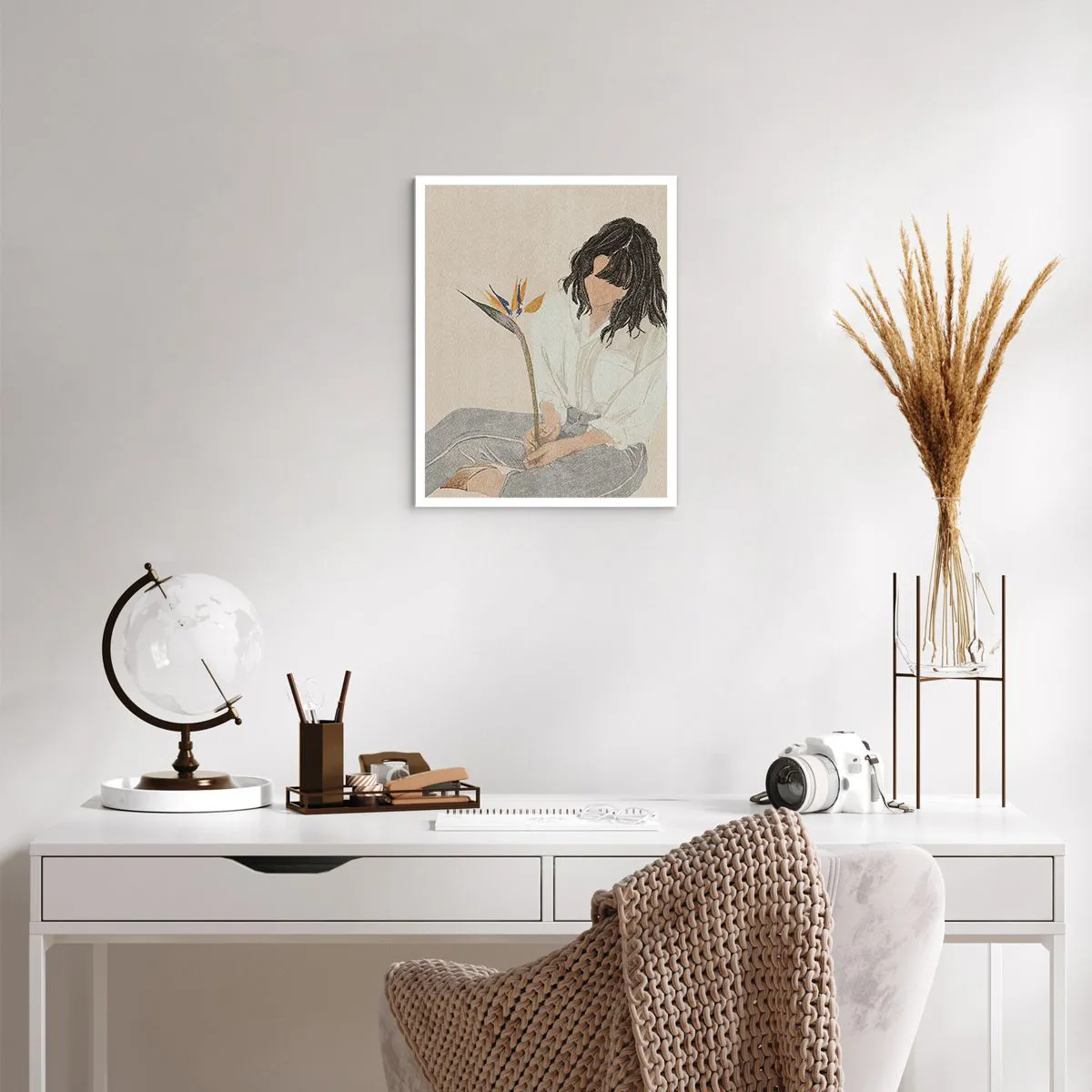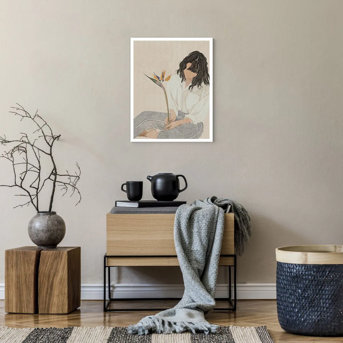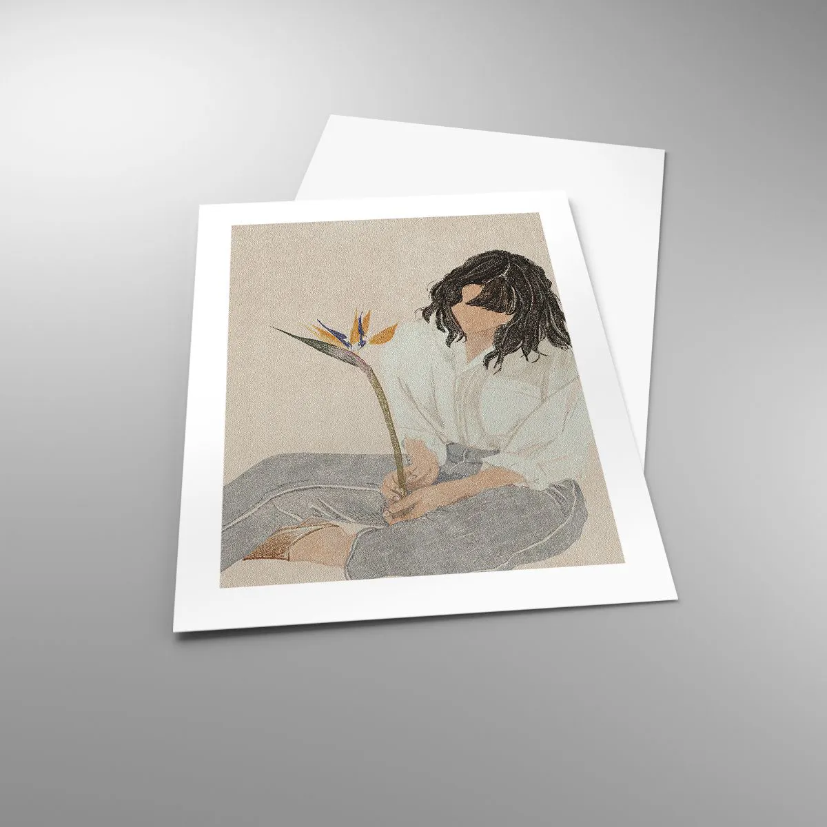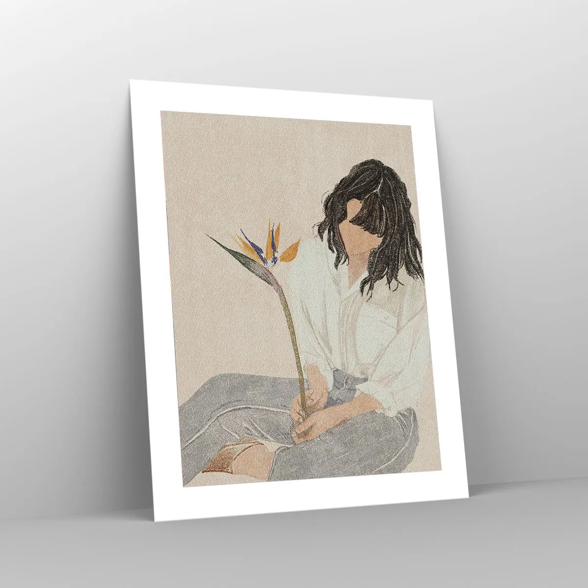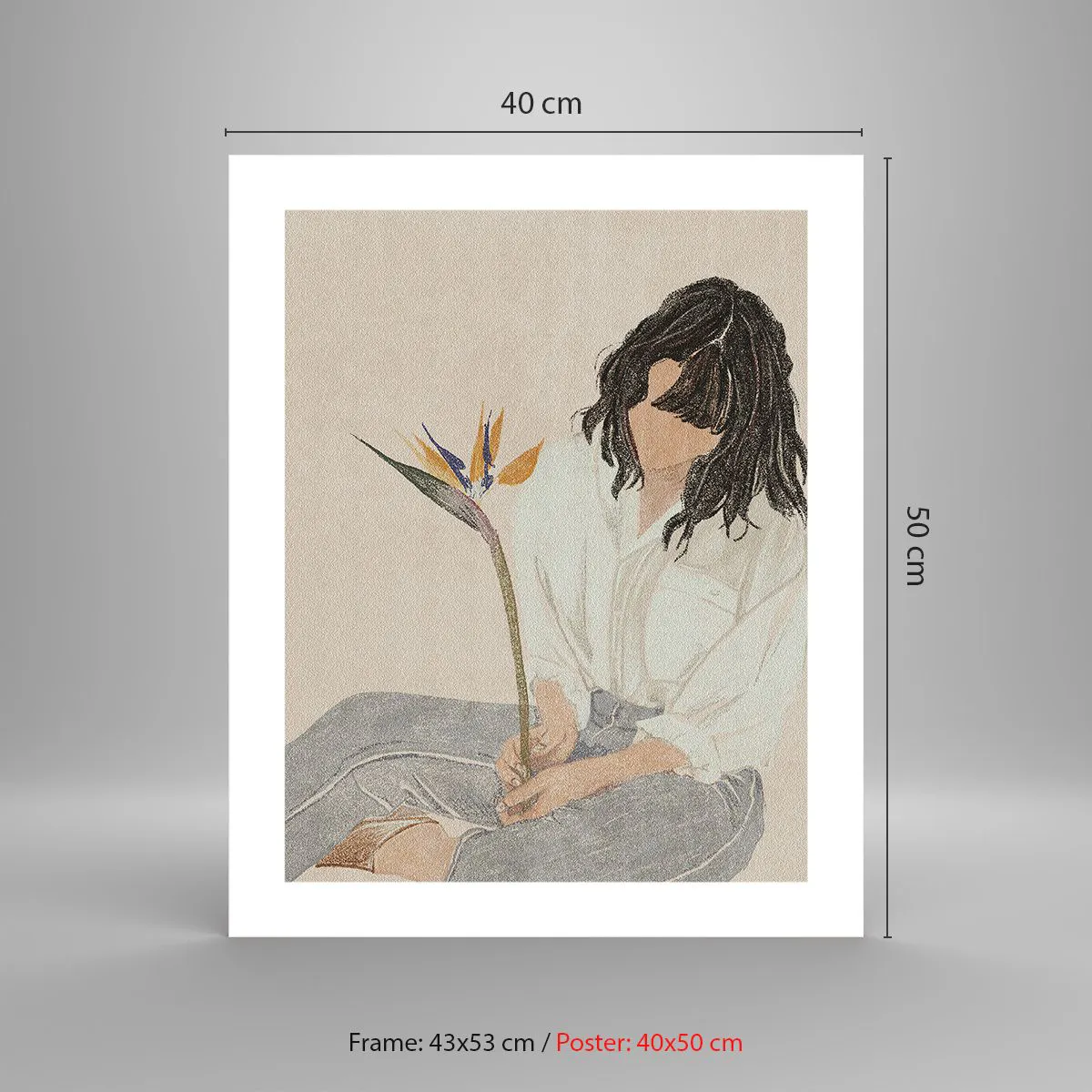 Plagát - Portrét s exotickým kvetom - 40x50 cm