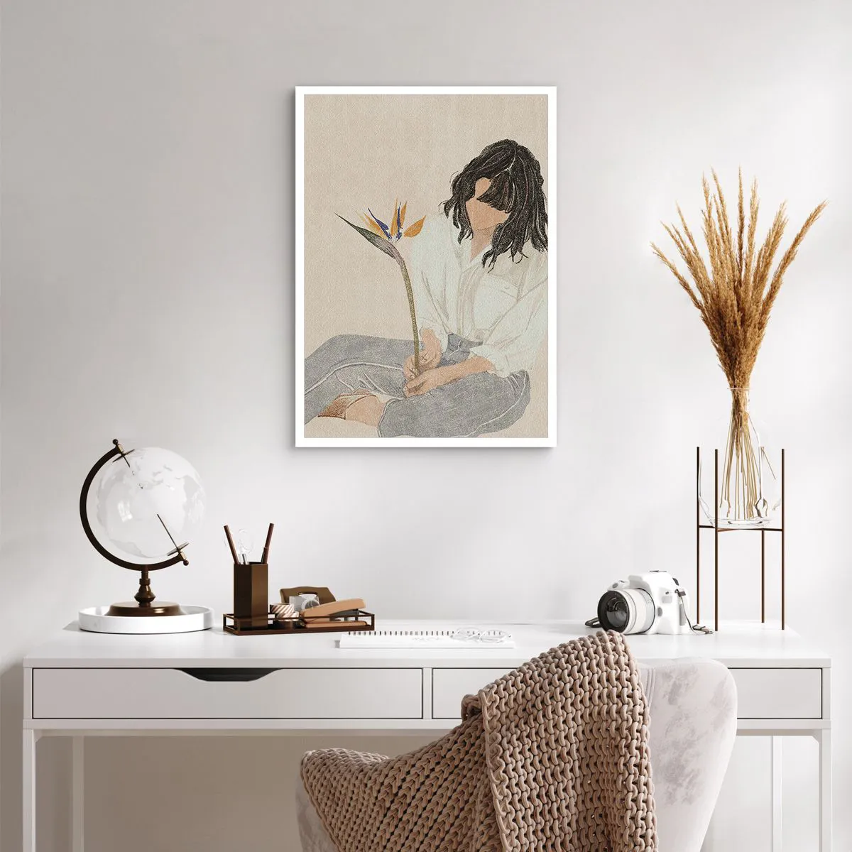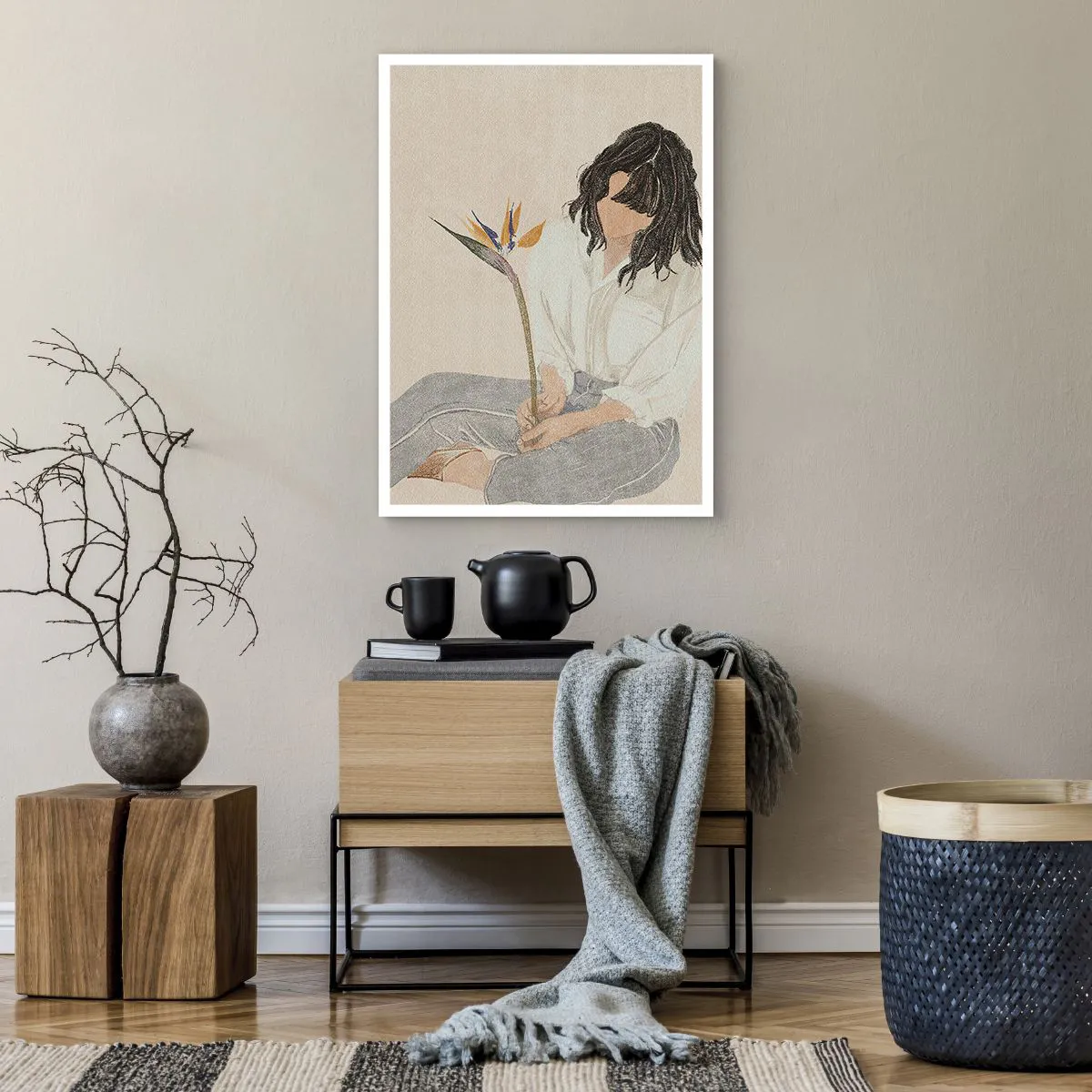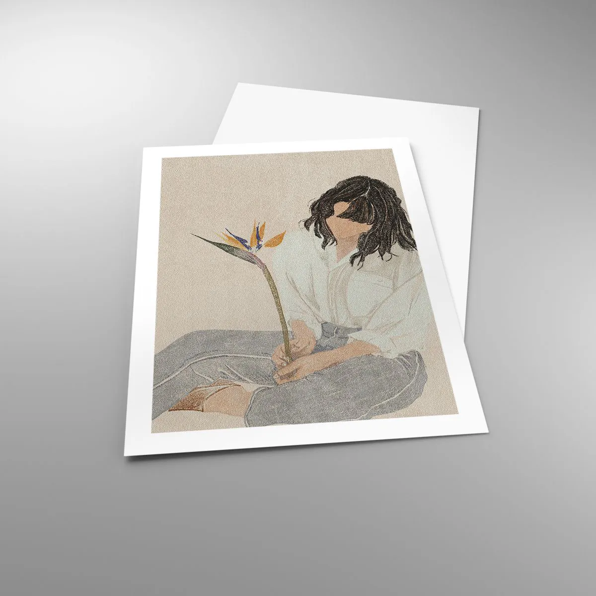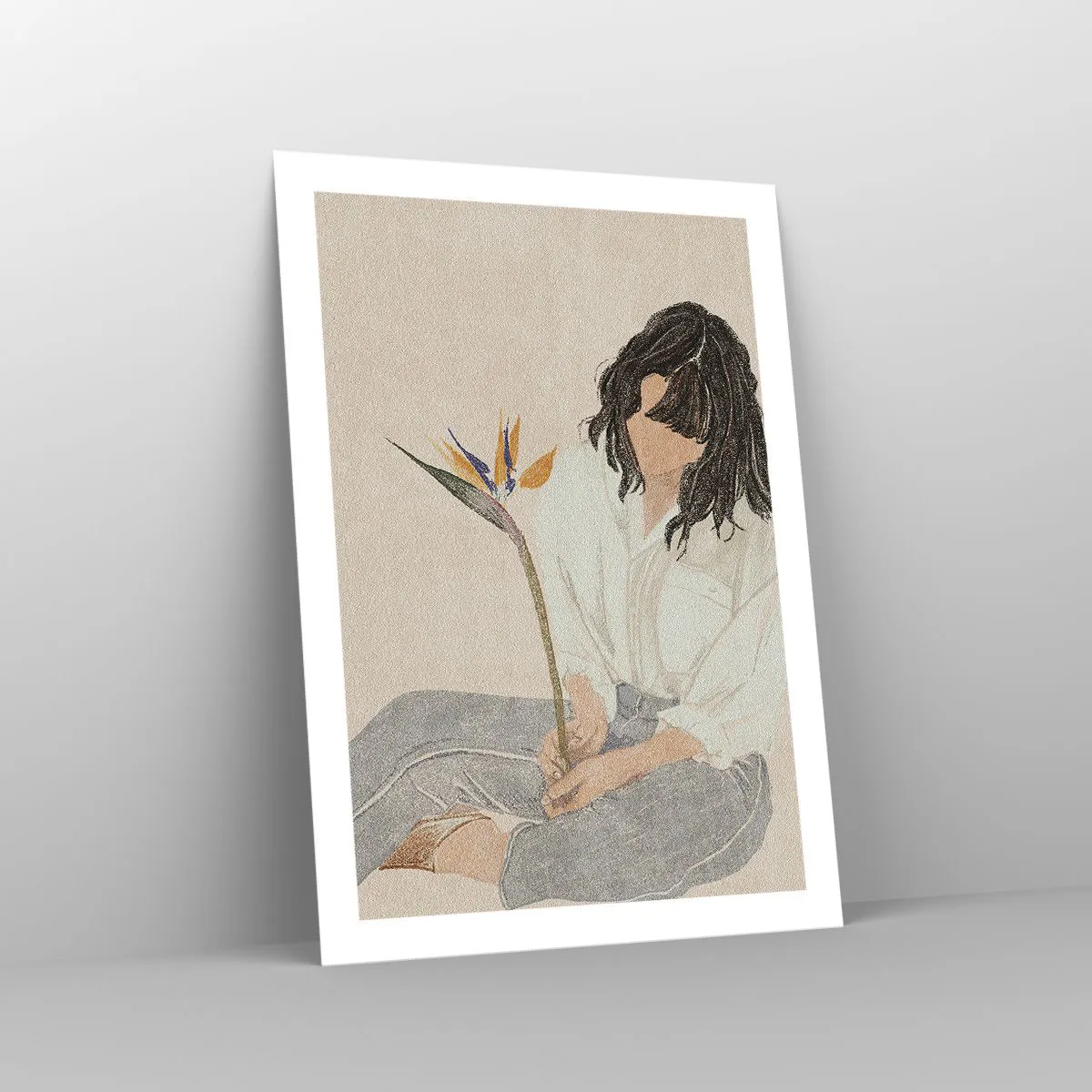 Plagát - Portrét s exotickým kvetom - 50x70 cm