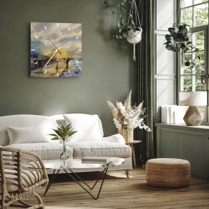 Nástenné hodiny - Prechádzka po prímorskej promenáde za súmraku - 30x30cm - Život na pobreží - Moderná nástenná dekorácia do obývacej izby, kuchyne a spálne ARTTOR