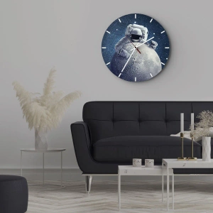 - Tieto hodiny zobrazujú astronauta držiaceho mesiac na pozadí hviezdneho vesmíru. Vtipný a inšpiratívny motív, ideálny do detskej alebo tínedžerskej izby.