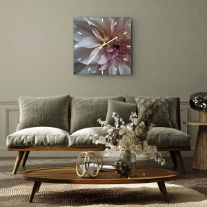 Nástenné hodiny Blooming Freshness - Detail kvetu georgíny v odtieňoch ružovej a bielej