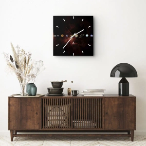 Nástenné hodiny - Planéty slnečnej sústavy na pozadí čiernej galaxie - 30x30cm - Naša štvrť - Moderná nástenná dekorácia do obývacej izby, kuchyne a spálne ARTTOR
