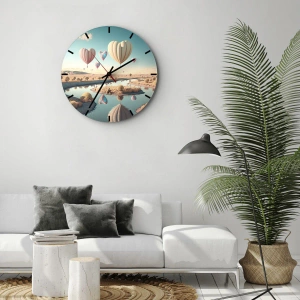 Nástenné hodiny - Láska ťa nechá vznášať sa - Balóny v tvare srdca vznášajúce sa nad riekou