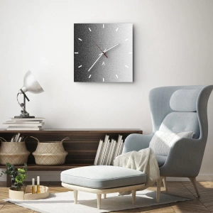 Hodiny sú vyrobené z bezpečného skla s hrúbkou 4mm. Technológia výroby hodín je v súlade s triedou bezpečnosti 2B2 podľa normy PN-EN 12600:2004, ktorá garantuje odolnosť proti nárazom. Hodiny na skle sú pripravené na zavesenie – majú kovový záves upevnený na zadnej strane hodín a penovú dištančnú podložku, ktorá upravuje vzdialenosť hodín od steny. Hodiny majú tichý plávajúci mechanizmus napájaný 1,5 V batériou - AA batéria (batéria nie je súčasťou balenia).