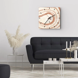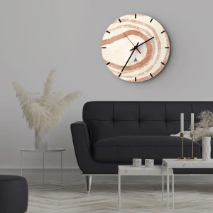 • Nástenné hodiny s abstraktným vzorom koralových kruhov na svetlom pozadí. Kompozícia kombinuje geometrickú jednoduchosť s prirodzeným rytmom a prináša teplo a harmóniu do každého interiéru.