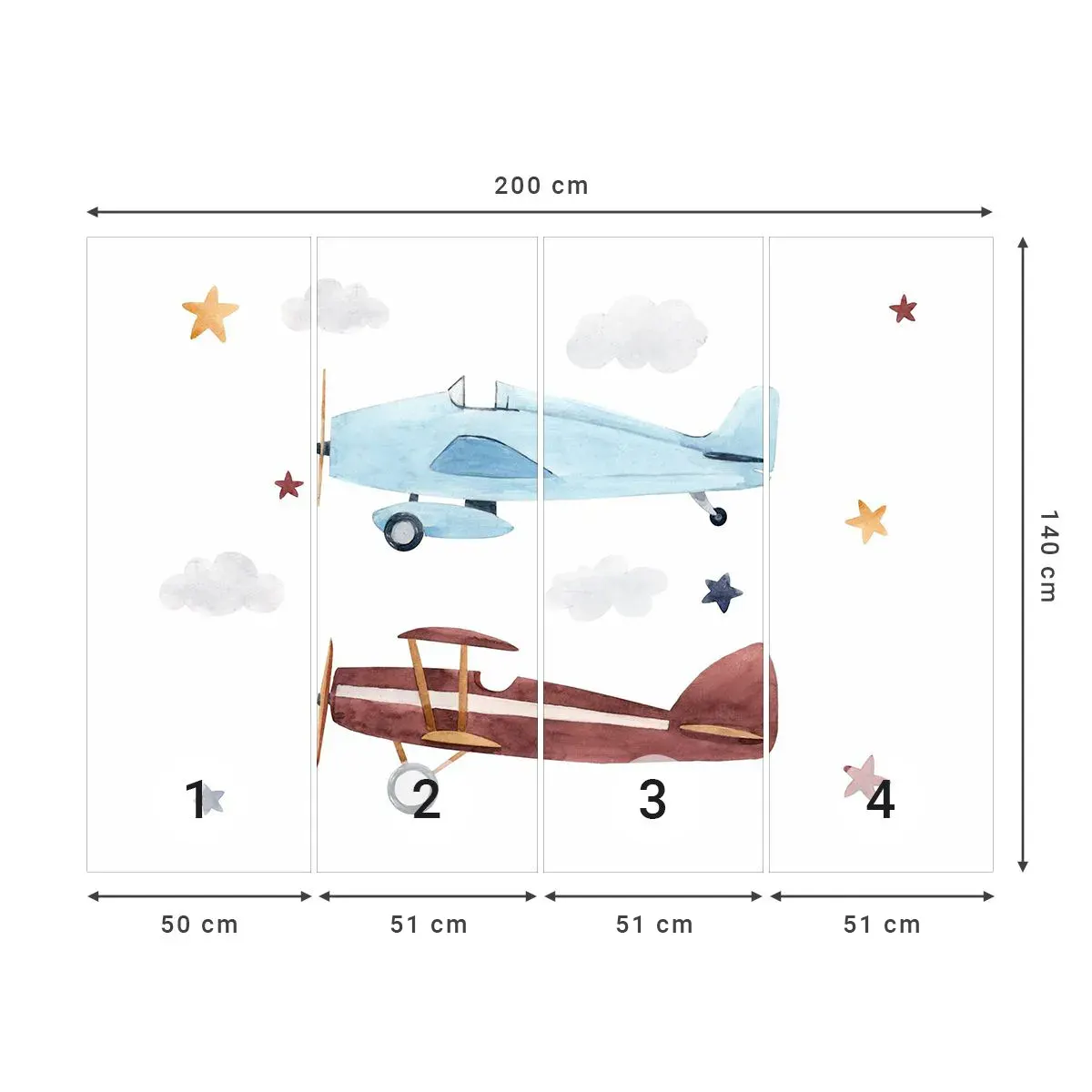Samolepiaca Fototapeta Deluxe Sticker - Pán pilot, čakáme! - Lietadlá, Retro, Detský - 200x140 cm