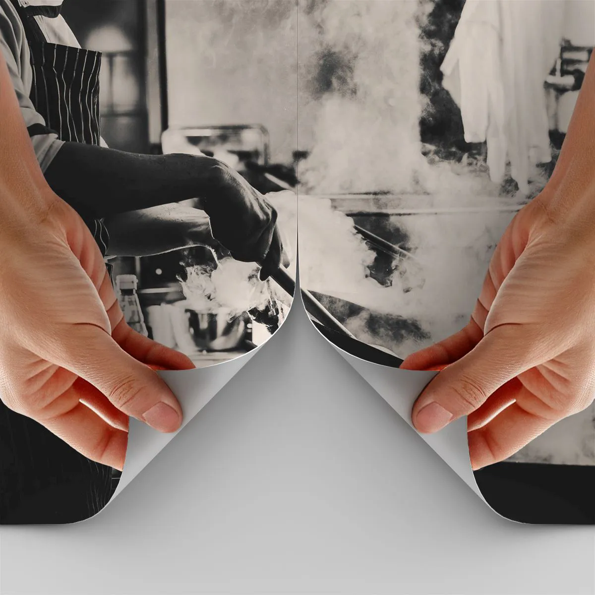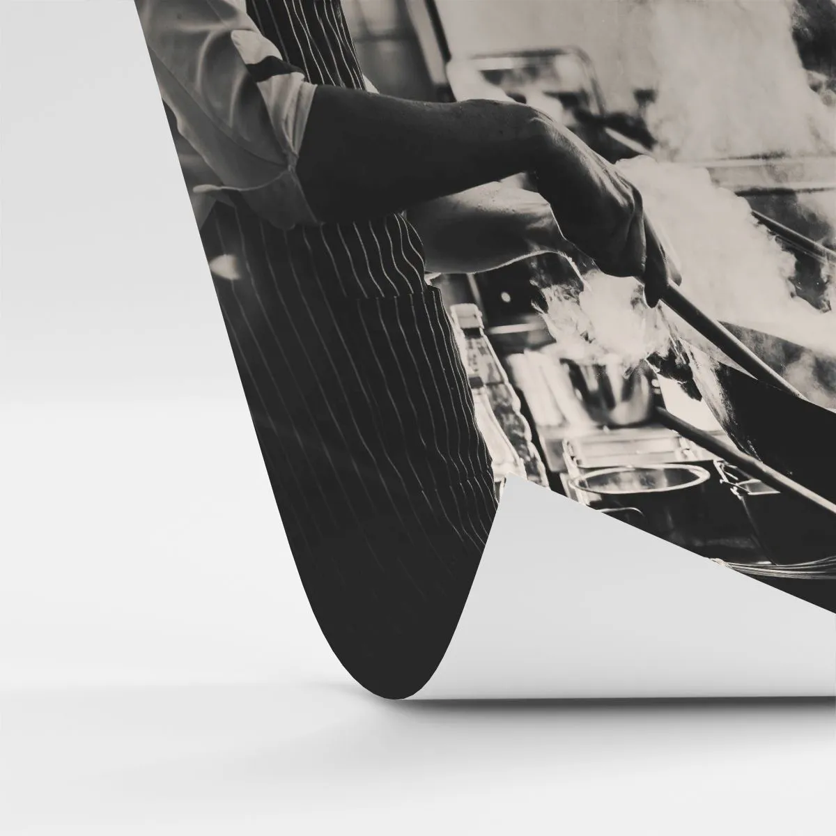 Tento produkt ARTTOR je vyrobený z vysoko kvalitného syntetického papiera s netkanou podložkou. Fototapeta má rozmer 100x70 cm, ľahko sa inštaluje, je odolná a šetrná k životnému prostrediu. Hladká textúra zvýrazňuje detaily – od pohybu ruky šéfkuchára až po textúru stúpajúcej pary.
