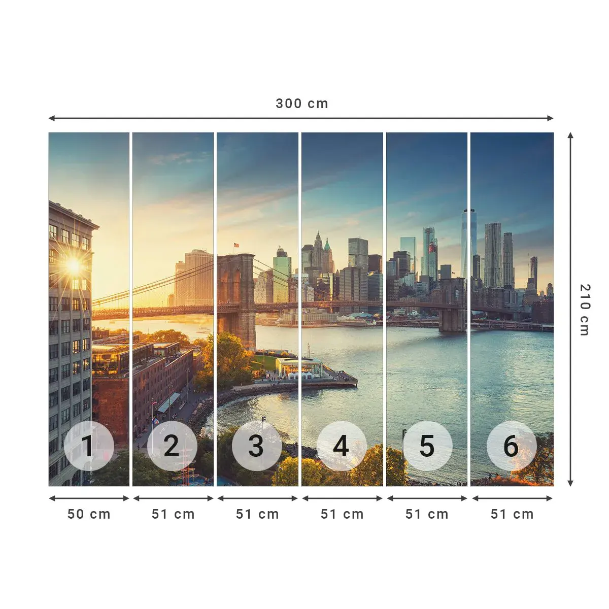 Samolepiaca Fototapeta Deluxe Sticker - Svitanie veľkomesta - New York, Mesto, Brooklynský most - 300x210 cm