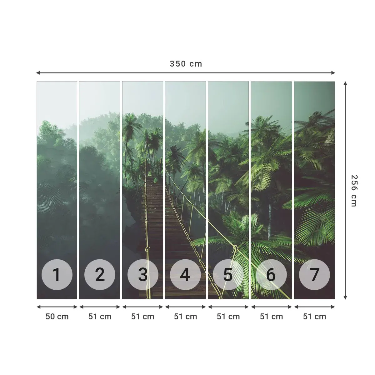 Samolepiaca Fototapeta Deluxe Sticker - Pri vodopáde zelene - Krajina, Džungle, Kokosová palma - 350x256 cm