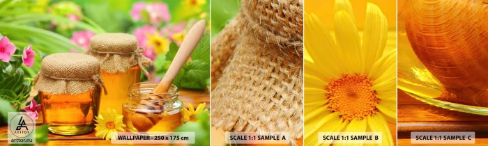 Vzorka Fototapeta Standard Eco - Sladko a kvetinovo - Gastronómia, Med, Kvety - 100x30 cm