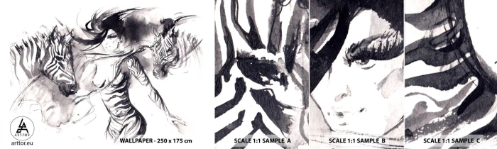Vzorka Fototapeta Standard Eco - Tancujúca so zebrami - Abstrakcia, Žena, Rebrá - 100x30 cm