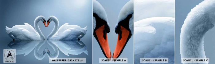 Vzorka Fototapeta Standard Eco - Čas na lásku - Labute, Láska, Srdce - 100x30 cm