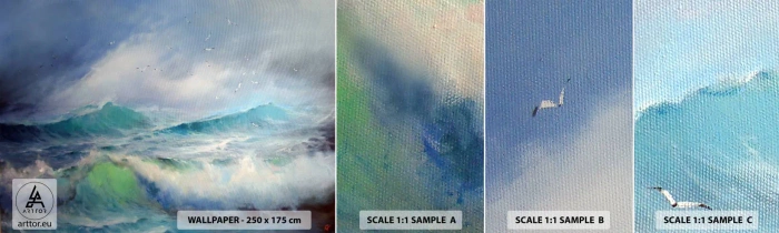 Vzorka Fototapeta Standard Eco - „Víchrica zavyla triumfálne…“ - Búrka, Vysoká vlna, Vtáky - 100x30 cm
