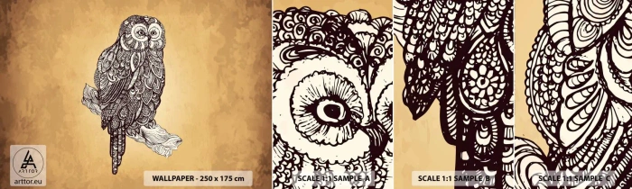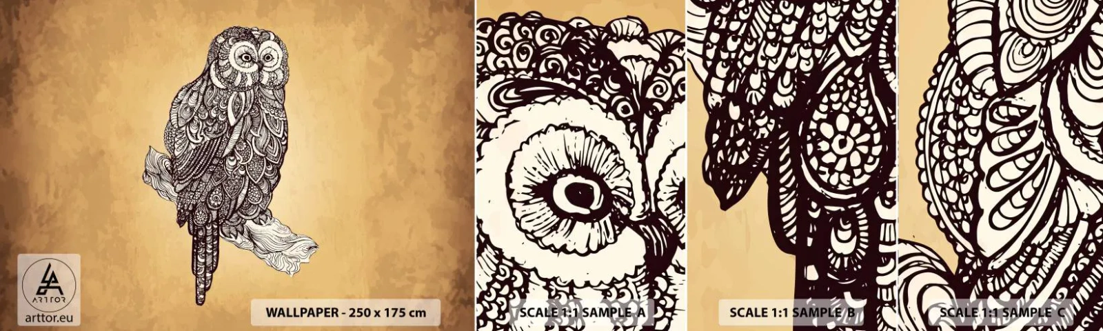 Vzorka Fototapeta Standard Eco - Majstrovské ornamenty múdrosti - Sova, Vták, Zviera - 100x30 cm