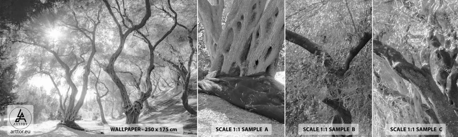 Vzorka Fototapeta Standard Eco - V olivovom háji - les, Zima, Stromy - 100x30 cm