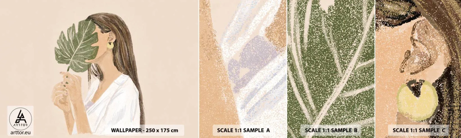 Vzorka Fototapeta Standard Eco - Tajomný portrét s vejárom - List, Žena, Boho - 100x30 cm