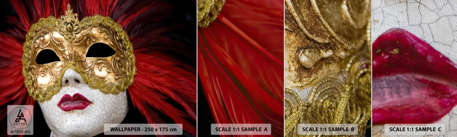 Vzorka fototapety Premium Sand - Sľub karnevalového dobrodružstva - Benátska maska, Kus, Benátky - 100x30 cm