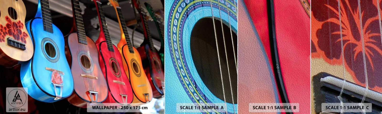 Vzorka fototapety Premium Sand - Latinskoamerická atmosféra - Hudba, Gitara, Hudobný nástroj - 100x30 cm