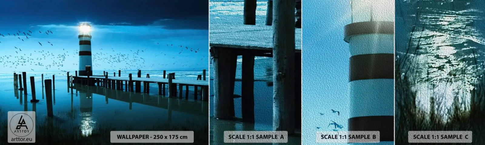 Vzorka fototapety Premium Sand - A nebojíš sa tmy - Krajina, Maják, Drevený most - 100x30 cm