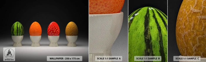 Vzorka fototapety Premium Sand - Ovocné raňajky - Abstrakcia, Ovocie, Vajcia - 100x30 cm